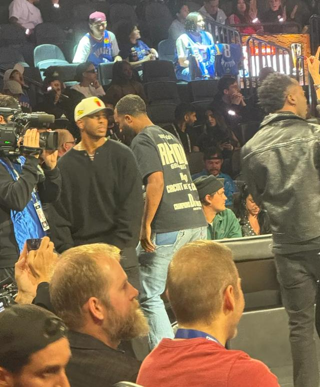 保罗和马刺名宿帕克坐在一路,所以这是代表马刺,仍是代表雷霆呢?